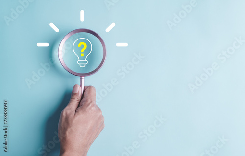 aim, marketing, success, target, career, challenge, competition, development, goal, performance. magnifying glass focus to light bulb icon, creative, idea, innovation, motivation planning development.
