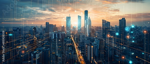 AI-Powered Future World, Image of a future city using artificial intelligence to control various systems, showing the impact of artificial intelligence on the way of life
