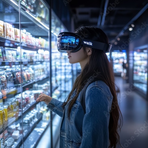 AI-powered immersive shopping experiences with augmented reality storefronts: Virtual stores where customers can "walk" through aisles and inspect products before buying. --stylize 250 --v 6.1 Job ID