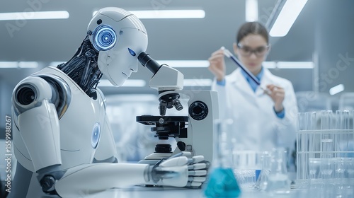robot, scientist, laboratory, microscope, physics, partner, interaction, scientific, investigation, opportunity, progress, efficiency, collaboration, intelligence, laboratory, testing, improvement, solution, tech, cognition, study, teamwork, discovery, innovation, workplace, support, learning, assistance, problem, challenge, automation, chemistry, team, future, result, science, biology, expert, engineering, development, health care, precision, information, tool, machine, goggles, datum, experiment, growth