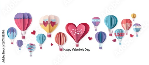 Air Balloon Hearts Adorable Valentines Day Card Celebration Concept