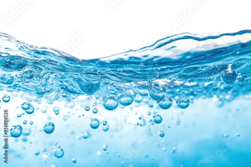 Air Bubbles Float Up Under Blue Water. Pure Water Wave, Oxygen Relaxation. Blue Water Textured on White Background..generative ai