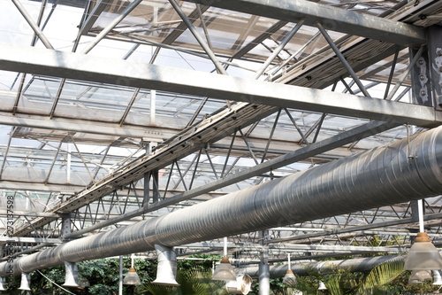 duct, air, industrial, ceiling, ventilation, conditioner, industry, pipe, technology, construction, metal, engineering, interior, modern, tube, energy, architecture, mechanical, circulation, steel, system, cold, cooling, equipment, heating, air conditioning, corrugated, nobody, piping, unit, design, heat, machine, temperature, cool, distribution, electric, electrical, installation, light, park, greenhouse, long, sky, glasses