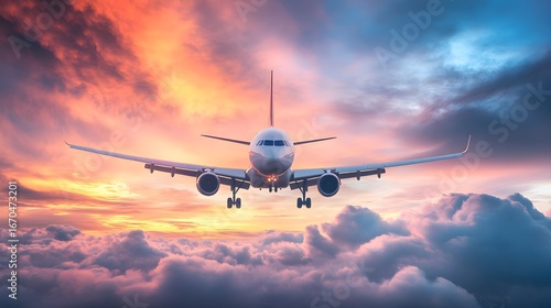 aeroplane, plane, aircraft, flight, travel, journey, sky, cloud, sunset, sunrise, up high, cloudscape, aviation, air travel, colorful sky, vibrant, majestic, beautiful, scenic, landscape, transportation, wing, landing