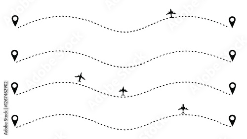 Airplane Routes in Dashed Line | Flight Path Tracking Vector Illustration