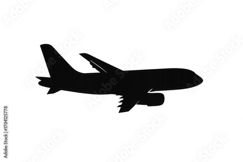 Airplane silhouette soaring diagonally upward, transparent backdrop highlighting sleek aircraft design for aviation graphics