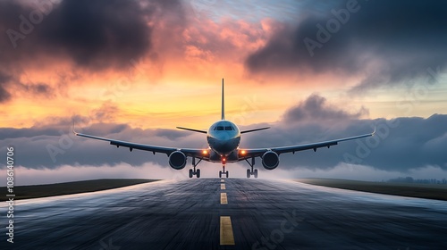 aeroplane, aircraft, jet, travel, adventure, sunset, sunrise, aerodrome, runway, take-off, landing, transportation, cloud, stormy, fog, wet, passenger, commercial, flight, journey, destination, dramatic, sky