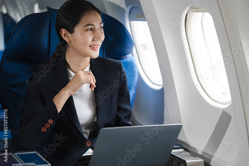 aeroplane, travel, flying, trip, woman, laptop, transportation, person, business, credit card, passenger, wi-fi, journey, window, sitting, technology, successful, businesswoman, connection, flight, horizontal, photo, relaxation, working, happiness, plane, businessperson, business travel, communication, female, holiday maker, traveler, wireless technology, smartphone, lifestyle, missy, application, tied-up, commercial, confident, corporate, display, economy, enjoyment, excitement, feedback, asian