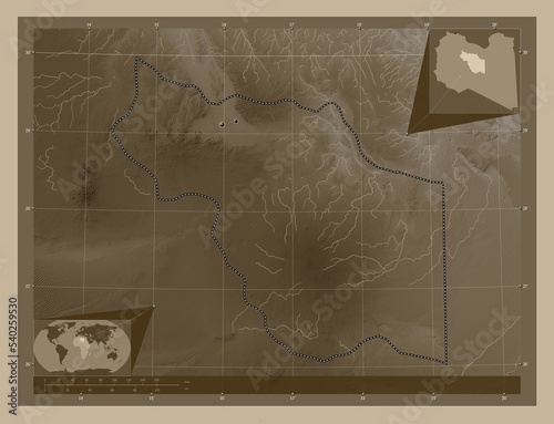 Al Jufrah, Libya. Sepia. Major cities