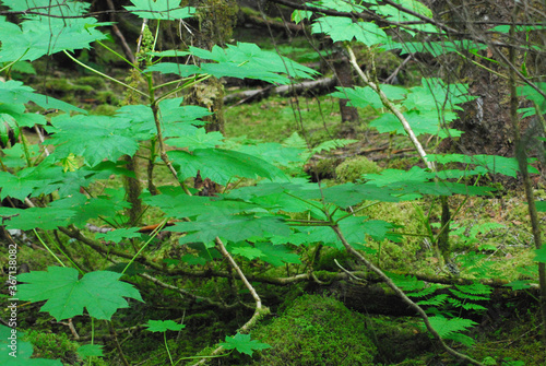 Alaska- Close Up Beautiful Rainforest Leaves, Moss and Trees
