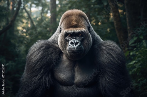 gorilla, silver, back, primate, nature, menacing, animal, mammal, wildlife, power, ape, glare, captive, beast, close, stare, strong