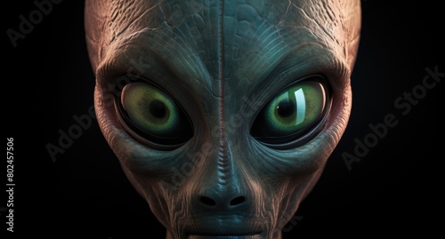 alien, extraterrestrial, science fiction, fantasy, green eye, dark background, closeup, portrait, digital artwork, surreal, creature, flying saucer, space, mysterious, futuristic, paranormal, strange, bizarre, eerie, creepy, uncanny, unknown
