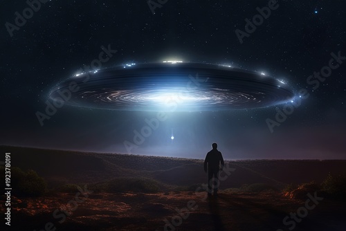 flying saucer, extraterrestrial, night sky, digital artwork