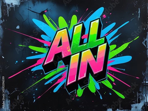all in, graffiti, art, design, typography, lettering, vibrant, colourful, splash, paint, texture, background, graphic, illustration, poster, banner, wallpaper, digital artwork, street art, urban, style, bold, energetic, positive, motivation, inspirational, energy, power, success, team, commitment, goal, ambition, achievement, people, landscape, cognition, shopping, diversity, modern, wellness