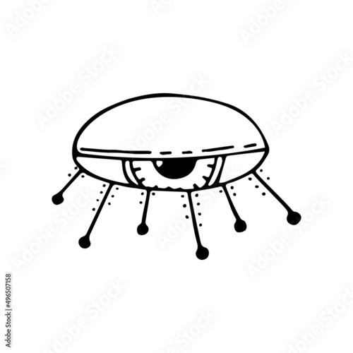 All seeing eye line. Mystical symbol of mind and spirit. Secret third eye. Ancient symbol. The wise eye of God. Magic heavenly amulet. Hand drawn vector doodle illustration. Simple outline element.