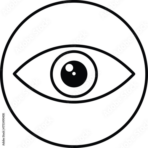 All-Seeing Eye: Minimalist Vision Symbol for Observation, Intuition, and Awareness in Detailed Vector Graphic on Transparent Canvas