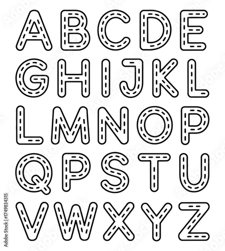 Alphabet Letters A to Z Designed as Roads with Dashed Lines on White Background vector