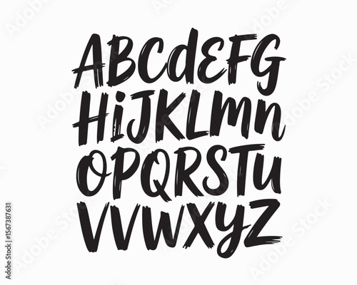 Alphabet letters a to z in bold black brush stroke style on a white background in a simple arrangement
