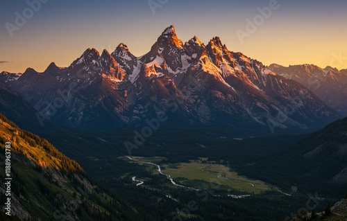 Alpine Meadow in a Mountain Valley – Serene Landscape with Blooming Wildflowers and Majestic Peaks