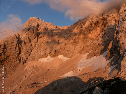 Alps glow at mountain Zugspitze, top of Germany, Bavaria