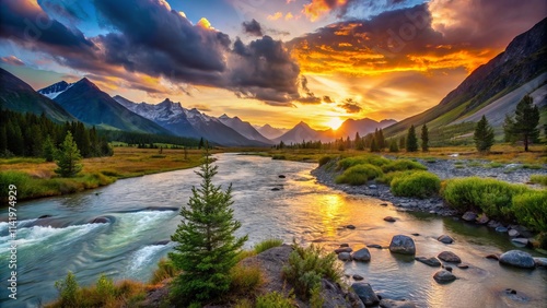 alpine meadow, mountain river, altai, siberia, russia, sunset, sunrise, golden hour, serene, peaceful, tranquil, beautiful, stunning, wildflower, grass-land, rock, water, shadow, evening light, natural beauty, photo, video, timelapse, detailed, sharp, clear, unpolluted, pristine, wild, untamed, remote, scenic, idylli, picturesque