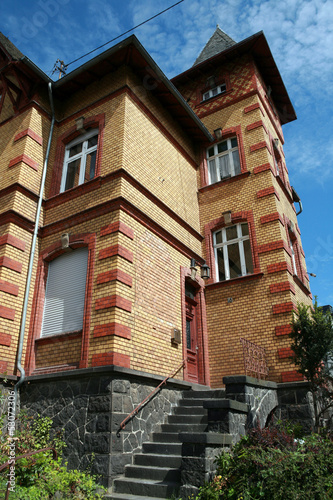 old building, villa, brick, brick, brick, yellow, red, architecture, house, eifel, house, window, staircase, balcony, german, rhineland-palatinate