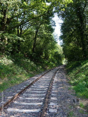 railway, track, forest, transport, nature, wooded, curve, communication, leaves, countryside, countryside, roadbed, rail, view, way, travel, green, ease, summer, excursion, adventure, history, retro, aged, connection, mobility, infrastructure, environmentally friendly, nostalgia