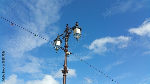 Alte Laterne vor blauem Himmel