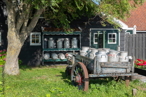 Alter Karren mit Milchkannen im Freilichtmuseum Zaanse Schans in Zaandam. Provinz Nordholland in den Niederlanden