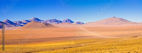 desert, landscape, arid climate, barren, panoramic view, panoramic, view, panorama, road, distant, america, andes, blue skies, chile, chilean, clear sky, copy space, day, destination, hill, land, high altitude, latin america, latin america, mountain, mountain chain, nature, no people, outdoors, place, range, scenic, sky, south america, south american, tour tourism, tourist attraction, travel destination