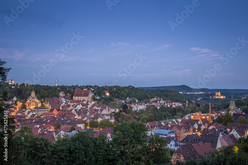 city, panorama, skyline, half-timbering, house, countryside, evening, night, middle-ages, salt
