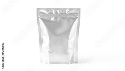 Aluminum foil zipper pouch for food product packaging design mock-up isolated on white background, simple style. White tone