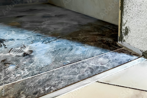 Aluminum strip for tile floor joints. Floor connector, decorative strip or sill.