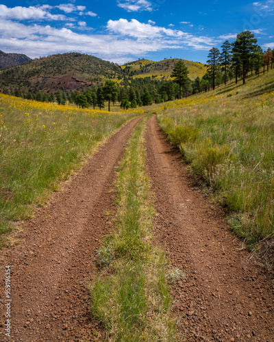 open road, road, open, dirt road, desert landscape, desert, wide, landscape, cloudy, stormy, rain, thunderstorm, arching, double, perspective, snow, mud, grass, mountain, dramatic, sunflower, flower