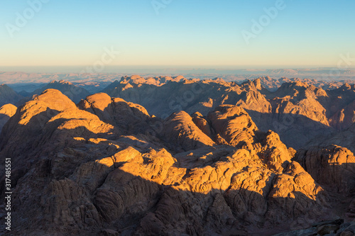 Amazing Sunrise at Sinai Mountain, Beautiful dawn in Egypt, Beautiful view from the mountain