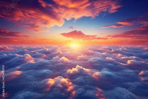 amazing sunset sky and clouds from above, beautiful sunrise landscape background
