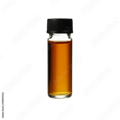 Amber Liquid in Glass Vial with Black Cap