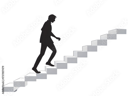 career, success, growth, ambition, progress, forward, climb, step, achievement, motivation, aspiration, journey, business, professional, silhouette, businessman, stair, up, stair, concept, people, three-dimensional, step, staircase, ladder, climbing, person, man, illustration, opportunity, staircase, job, abstract