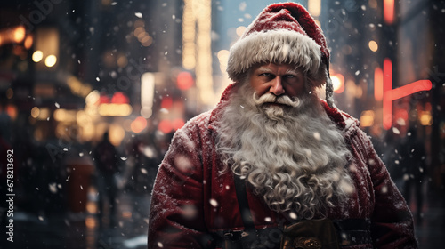 America 1930th. New York. Christmas. Merry Santa Claus. Snow. Celebration. Christmas trees