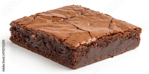 American Brownie: Image of a thick, moist piece of brownie, freshly baked. Shiny crust and cracks visible.