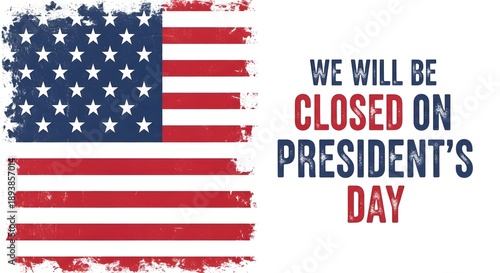 american, flag, holiday, closure, notice, day, us, united, state, patriotic, red, white, blue, star, stripes, distressed, vintage, celebration, federal, closed, business, office, hours, signs, graphic, design, illustration, america, national, symbol, patriotism, independence, freedom, government, politic, washington, lincoln, schedule, announcement, public, service, off, bank, school