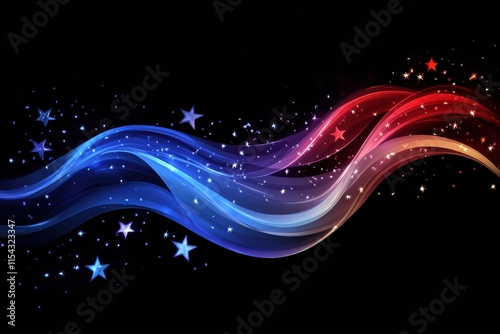 American flag motif with flowing fabric texture and stars creating a vibrant display in a captivating design. Generative AI