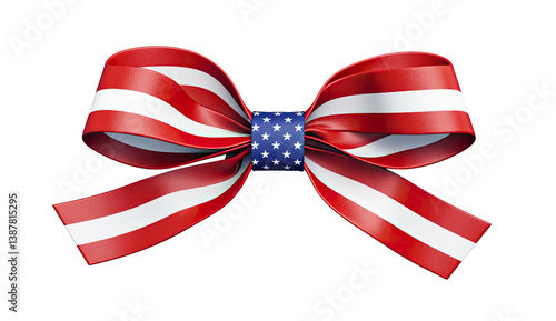American Flag Ribbon Bow for Patriotic Designs. American Flag Ribbon Bow on transparent background
