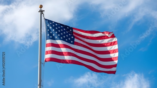 American flag waving patriotic symbol of usa stars and stripes against blue sky background freedom representation