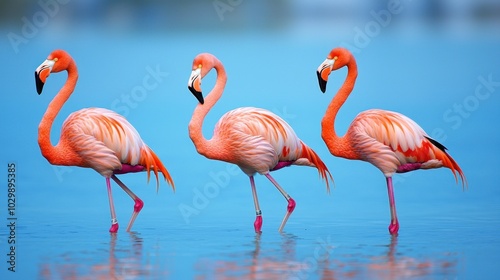 American Flamingo: A group of flamingos standing on one leg in a tropical lagoon.