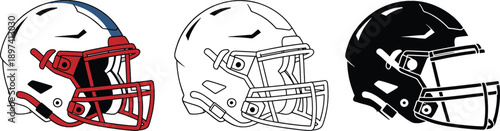 American football helmet silhouette & Outline and illustration set isolated on transparent background