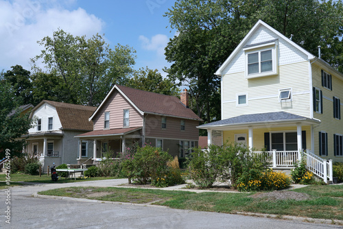 house, home, siding, clapboard, front yard, tree, american, residential, street, colourful, gable, summer, blue skies, sunny, bourgeoisie, typical, average