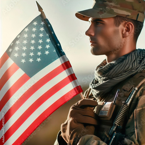 American soldier with flag, flag of the United States of America, marine with USA flag.sailor