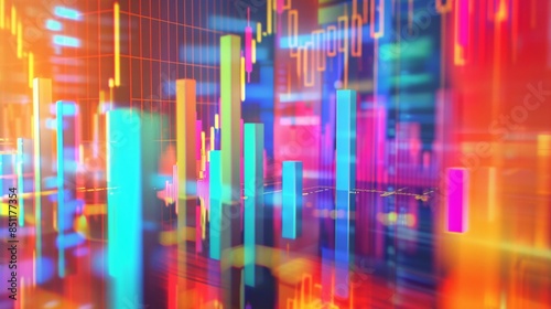 An abstract art installation featuring graphs and charts, represent market volatility and investment growth. Conceptual pieces depict themes of risk, reward, and financial growth