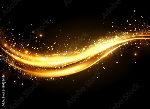 An abstract artwork featuring flowing waves in golden orange and yellow, illuminated against a stark black backdrop. The smooth, dynamic lines create a feeling of movement and energy